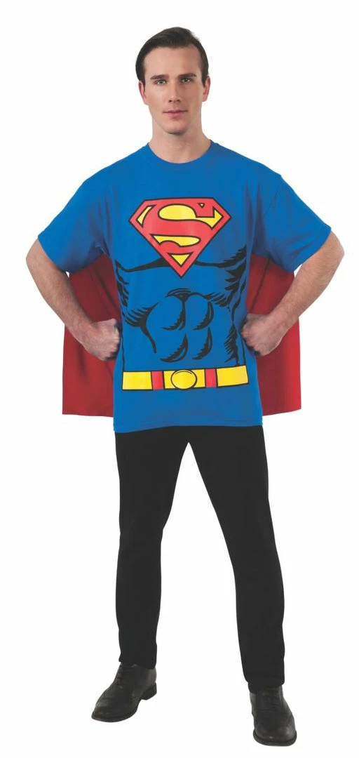 Is it Clark Kent or Superman? The Superman Printed Logo T- Shirt has a removable logo printed cape and is a perfect disguise to wear under your white button down dress shirt. Clark Kent glasses available separately.