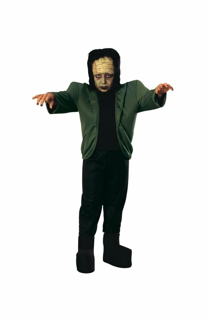 Get into the spirit of Halloween with one of the classic Universal Studios original monsters, Frankenstein. The costume is intended to be a bit on the tight side since Frankenstein was enormous. The green jacket features shoulder pads and has a tie back. Also included are black elastic waist pants, shoe covers, and a headpiece. Makeup kits are available separately.