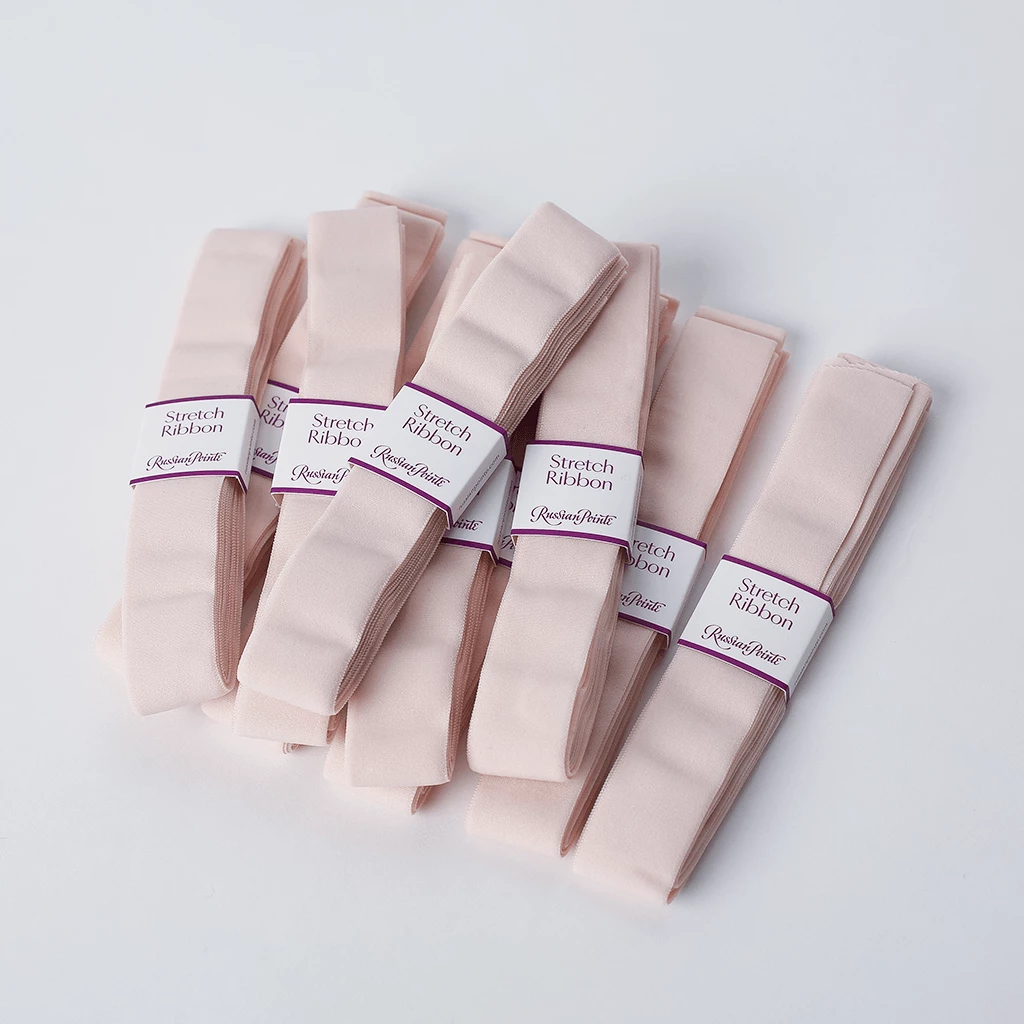 2.5 yards of stretch ribbon in light Russian pink pairs perfectly with your Russian Pointe shoes.