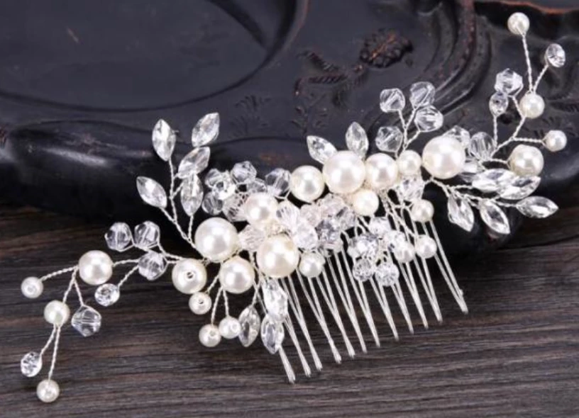 The bead and crystal comb has a comb attached. Measures about 5″ long and 2″ tall but the metal bead and crystals can be moved into place. Perfect hair adornment for competitions, ballets or a costume accessory.