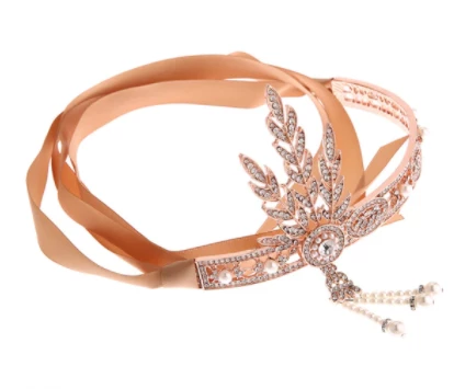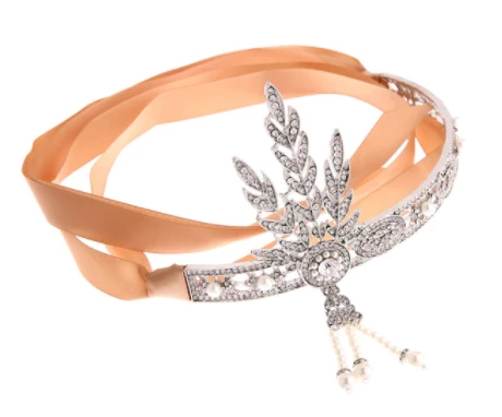 The Rhinestone Flapper Headband is a stunner! Take your Gatsby look to the next level with this rhinestone and metal headband featuring satin ribbon ties for a secure fit.