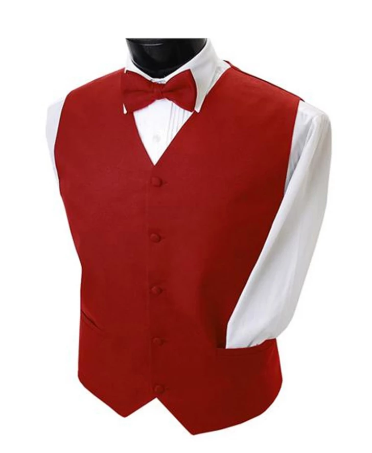 Bring a sense of style to any occasion with a polyester twill vest. The vest features a button down front with a full back and a waist adjuster for a fitted look. Back color is the same as the front color. Includes vest only. Shirt and bowtie are available separately.