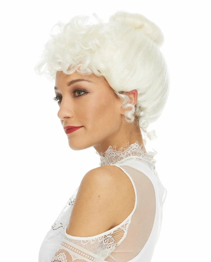 Beautiful White Gibson Girl style wig is the perfect look for Mrs. Claus. The wig has an elastic wig cap and can adjust to fit securely. Add glasses and look like Santa’s wife. Costume available separately
