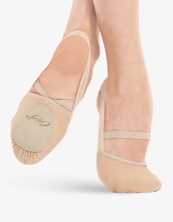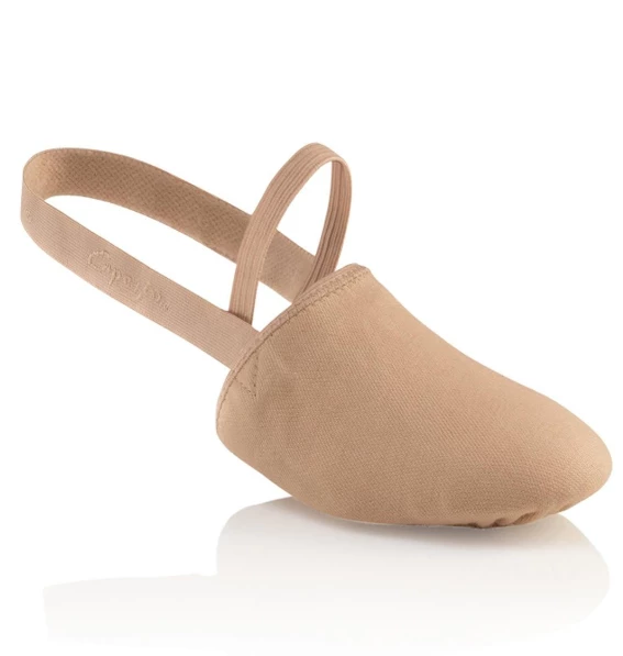 Pirouette like the pros in the stretch canvas Pirouette II shoe. The half sole design offers the best of both worlds. Ultra soft canvas hugs the forefoot while the open heel provides much needed breathability. Elastics around the sides and under the arch of the foot keep you stable while turning non-stop. Capezio logo on ballet-style sole patch adds an exclusive touch. Fitting information: Suggested sizes in menu, wider feet should start up the next size.