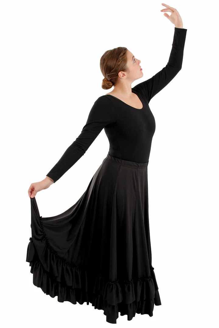 Solid color 8-panel flamenco skirt with ruffles is a must for any dancer wishing to twist, twirl, and tap across the stage. This beautiful skirt offers comfort, mobility, and style.