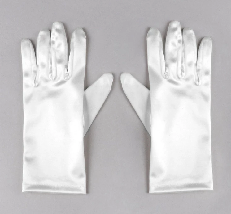 The satin wrist length gloves are a silky and elegant addition to any costume. The spandex stretch glove is offered in different sizes. Also available in adult sizes.