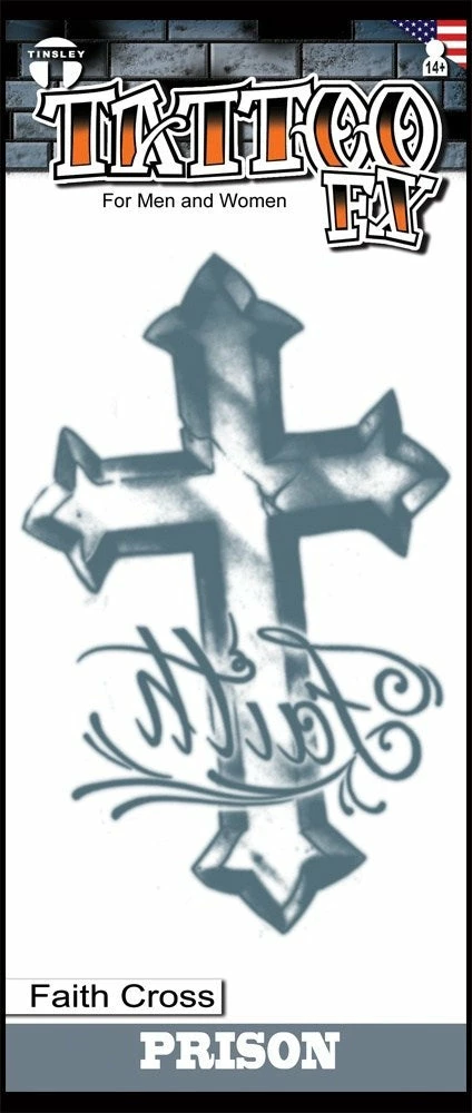 Surprise your friends when you show them your prison series faith cross temporary tattoo! Great for parties, costumes or everyday. Tinsley Transfers tattoos are incredibly real looking fake tattoos! The tattoo card is 3.75″ x 8.75″.