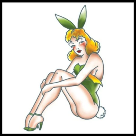 Surprise your friends when you show them your new bunny pin up girl temporary tattoo! Great for parties, costumes or everyday. Tinsley Transfers tattoos are incredibly real looking fake tattoos! The tattoo card is 3.75″ x 8.75″.