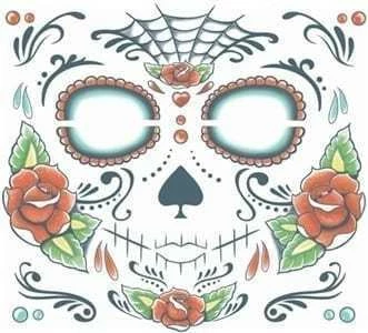 The Day of the Dead Series Sugar Skull face tattoo is a great alternative to wearing makeup. The fast application will have you looking like a Catrina in a matter of minutes. Once you have applied the face tattoo, it is easy to embellish it with adhesive face jewels, also available here. Tinsley Transfers tattoos are incredibly real looking fake tattoos!