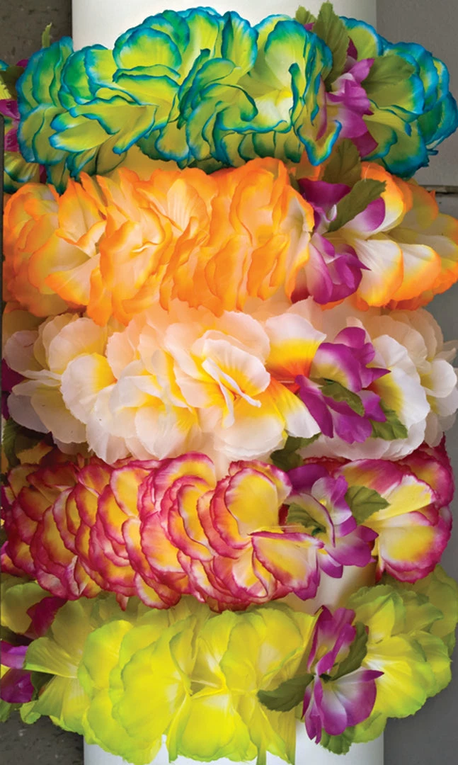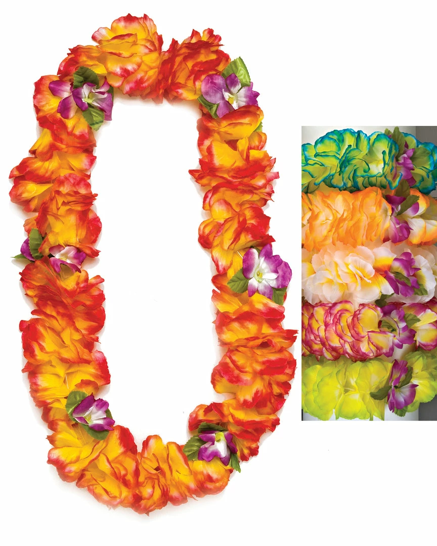 The beautiful Orchid Lei offers a fuller lei with vibrant colors. The silky nylon flowers are available in different colors to coordinate with any tropical themed ensemble. Check out our other accessories available separately.