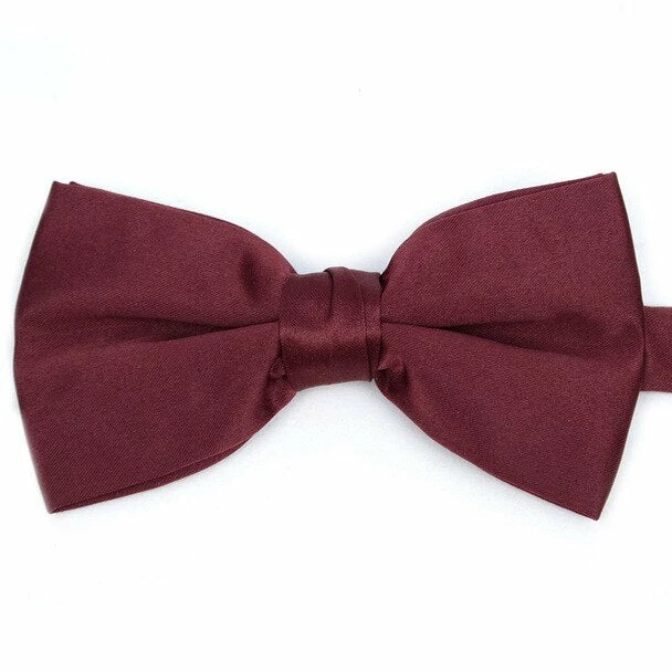 Classic solid color poly satin banded bowtie is available in a wide array of colors. The band allows the bow tie to be adjustable to fit most sizes. The width measures 4.75″ and is 2.5″ tall.