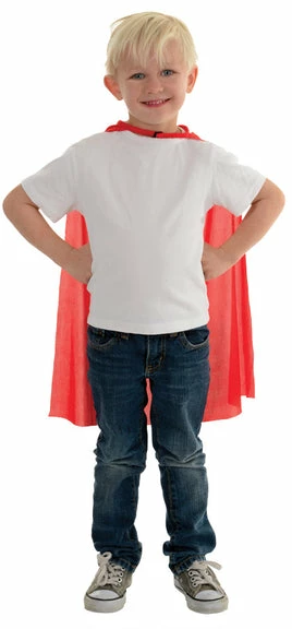 Show off your superpowers with this bright red cape that is the perfect accessory to your heroic costume! Velcro closure at the neck and straight bottom edge. One size fits most toddlers.
