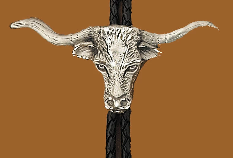Deluxe quality bolo tie has a longhorn steer head clasp made of pewter. Attached is a leatherette braided cord for durability. The clasp adjusts on the cord so it fits all neck sizes. The clasp measures 3.625 in x 1.75 in. Made in the USA!
