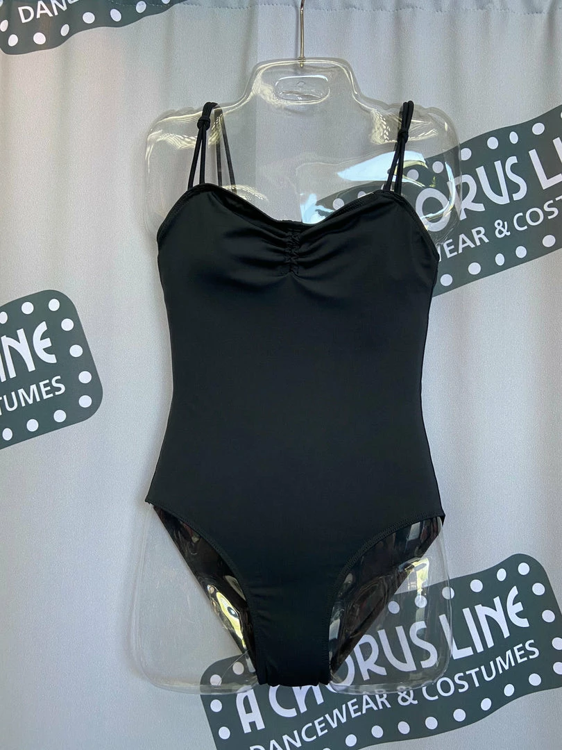 The Zella Leotard by Ballet Rosa is in their new Academy line. The Zella leotard is a modern touch on a classic design. The black double strapped camisole has a pinch front and a moderate back. Made in Portugal.
