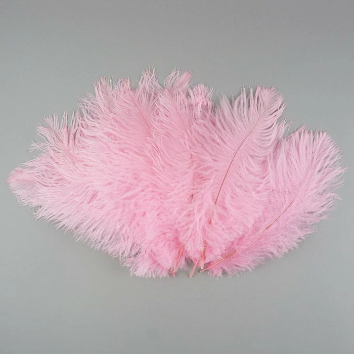 Ostrich Feather Drabs will range in size from 4-16 inches long and are available in a variety of colors. They have wispy hair-like feathers coming out from a stiff center quill (between 1-4 inches long) making the overall width approximately 2-8 inches. Ostrich Drabs are more narrow than plumes, and not as tall. Their quills are softer than plume quills, and the “hairs” don’t hang as much.