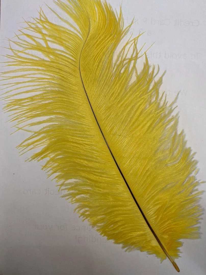 Ostrich Feather Drabs will range in size from 4-16 inches long and are available in a variety of colors. They have wispy hair-like feathers coming out from a stiff center quill (between 1-4 inches long) making the overall width approximately 2-8 inches. Ostrich Drabs are more narrow than plumes, and not as tall. Their quills are softer than plume quills, and the “hairs” don’t hang as much.